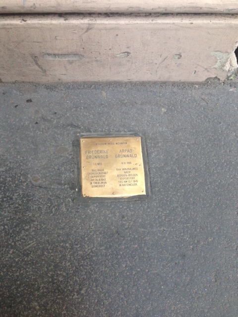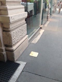 これは「つまづきの石」とよばれるもので、第二次世界大戦の時にナチスによって殺されたユダヤ人が住んでいた場所を示す石です。
