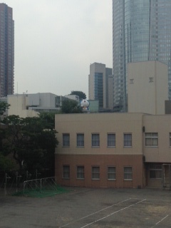 2階の部長室の横にある、丸くなった窓から外を見ると。。。。
