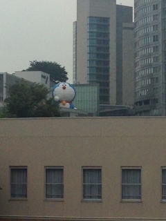 ヒルズの横に巨大ドラえもんがいるみたい。